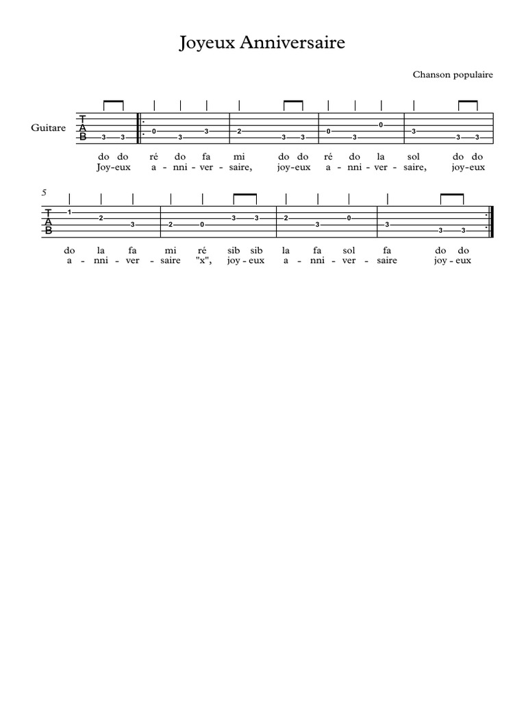 Joyeux Anniversaire Tab F Partition Et Parties Pdf Compositions Musicales Musicologie